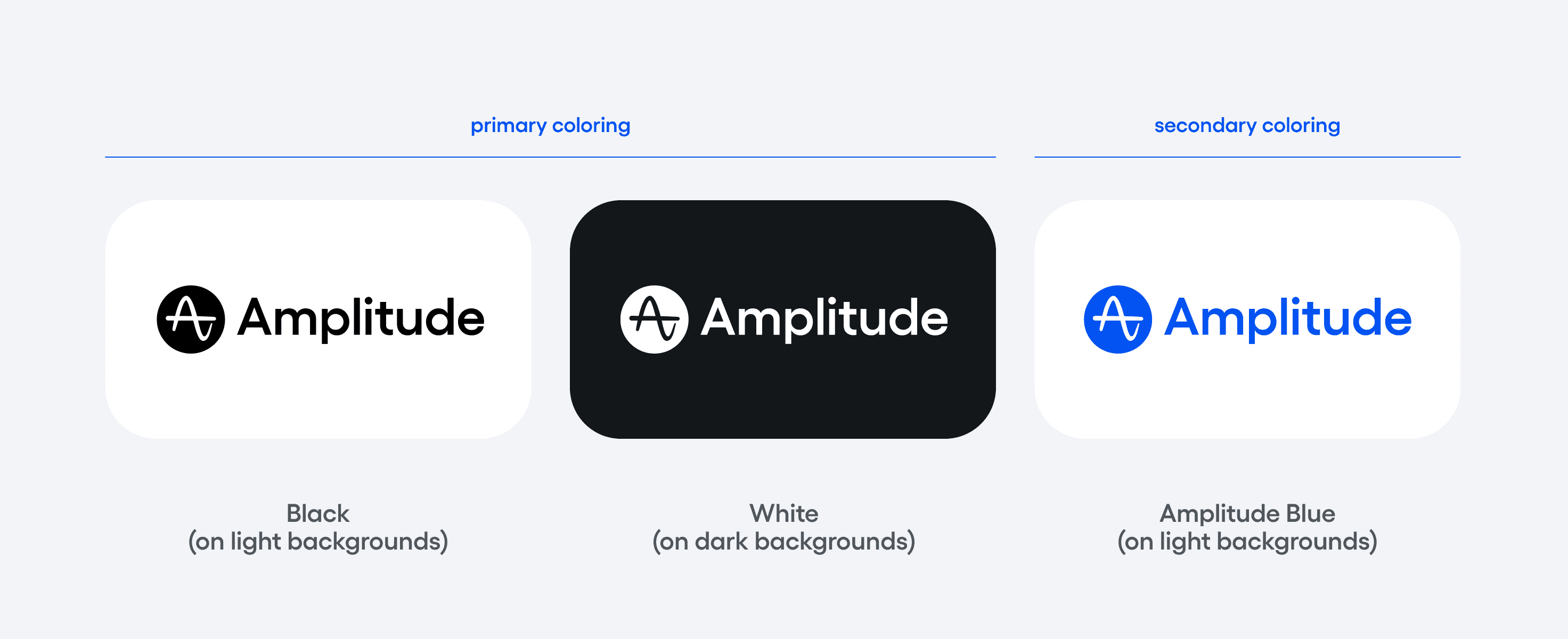 Our logos should lead in either black or white, ensuring legibility is prioritized. In special instances, our logo may be colored in Amplitude Blue.